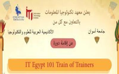 يعلن معهد تكنولوجيا المعلومات بالتعاون مع جامعة أسوان و الأكاديمية العربية للعلوم والتكنولوجيا عن إقامة دورة تدريبية IT...