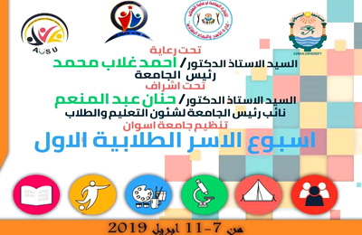 تحت رعاية الأستاذ الدكتور/ أحمد غــلاب محمـد – رئيس جامعة أســوان، وتحت إشراف الأستاذ الدكتور/ حنان عبدالمنعم عــوض – نائب...