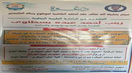 On Tuesday corresponding to 10/1/2023 the master thesis discussion was discussed by the researcher/Mohamed Ali Ibrahim -Avian and Rabbit Diseases -Faculty of Veterinary Medicine-Aswan…