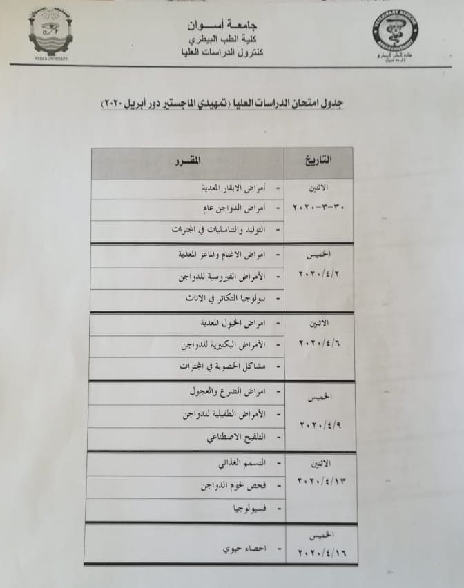 Exam Schedule ( Role of April 2020) March 5, 2020 Exam schedules of postgraduate studies (prep-master) the role of April 2020