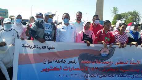 Prof.Ahmed Ghallab-Aswan University President participated with students in the Sport Today which includes the marathon of running from the unfinished obelisk at the Airport Road…