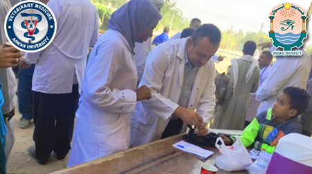 Under the direction of Prof.Ayman Mahmoud Othman, President of the University, and in collaboration with the Faculty of Veterinary Medicine, Aswan University, Directorate of Veterinary Medicine in Aswan, the Sub-Syndicate of Veterinarians in Aswan, and Wizon Pharmaceutical Company, the medical convoy completed its mission.