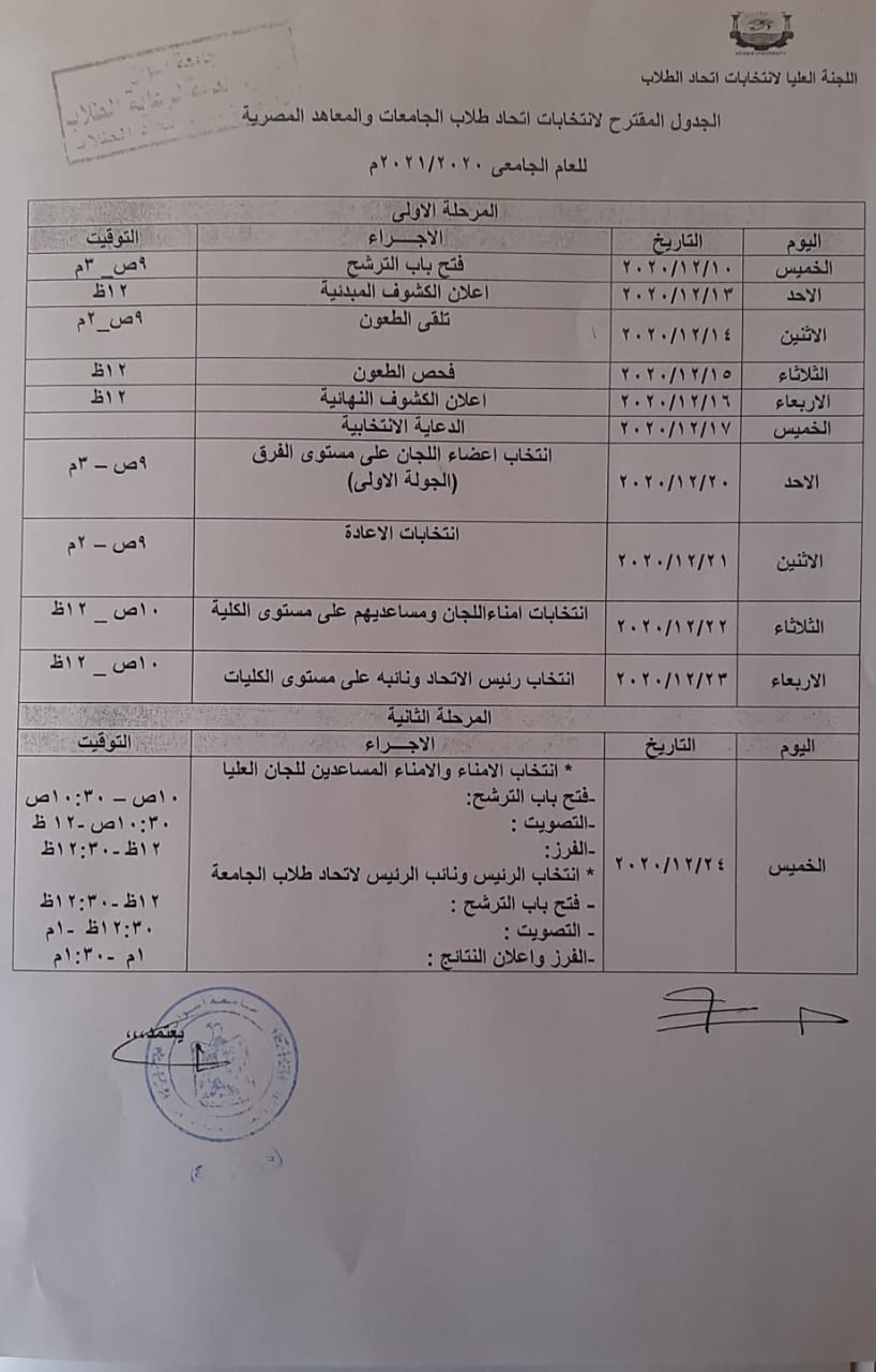إعلان هام لجميع طلاب الفرق المختلفة بكلية الطب البيطرى سيتم بمشيئة الله فتح باب الترشح لإنتخابات إتحاد طلاب الكلية وذلك يوم الخميس الموافق ١٠ / ١٢ / ٢٠٢٠ من الساعه ٩صباحاً إلى الساعه ٣عصراً وعلى من يرغب فى سحب إستمارة الترشح التوجه لإدارة رعاية شباب الكلية وأن يكون معه البطاقة الشخصية وصورة منها وبرنامجه الإنتخابى مكتوب ورقياً وفيما يلى جدول إنتخابات للإطلاع علي الجدول إضغط هنا